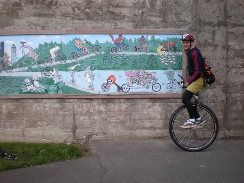 Washington likes it’s uni murals. Here is one along the Burke-Gilman trail in Fremont. Ignore the actual unicyclist, and you’ll see a turtle on a uni, a narwhal on a uni, and a flamingo on a (possibly flamingo) giraffe.