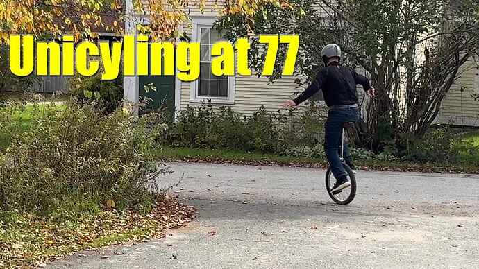 Then, fast forward 50 years without riding and I happened to see people online like Ed Pratt road riding a 36” uni and covering great distances with little effort. At 68 I wondered if I could do that. I still had the Columbia so I dusted it off and put on a new tire. I found I could still ride it about the same mediocre level as I could 50 years ago. Just as when I was a kid I could mount and ride but never did learn any “tricks”.