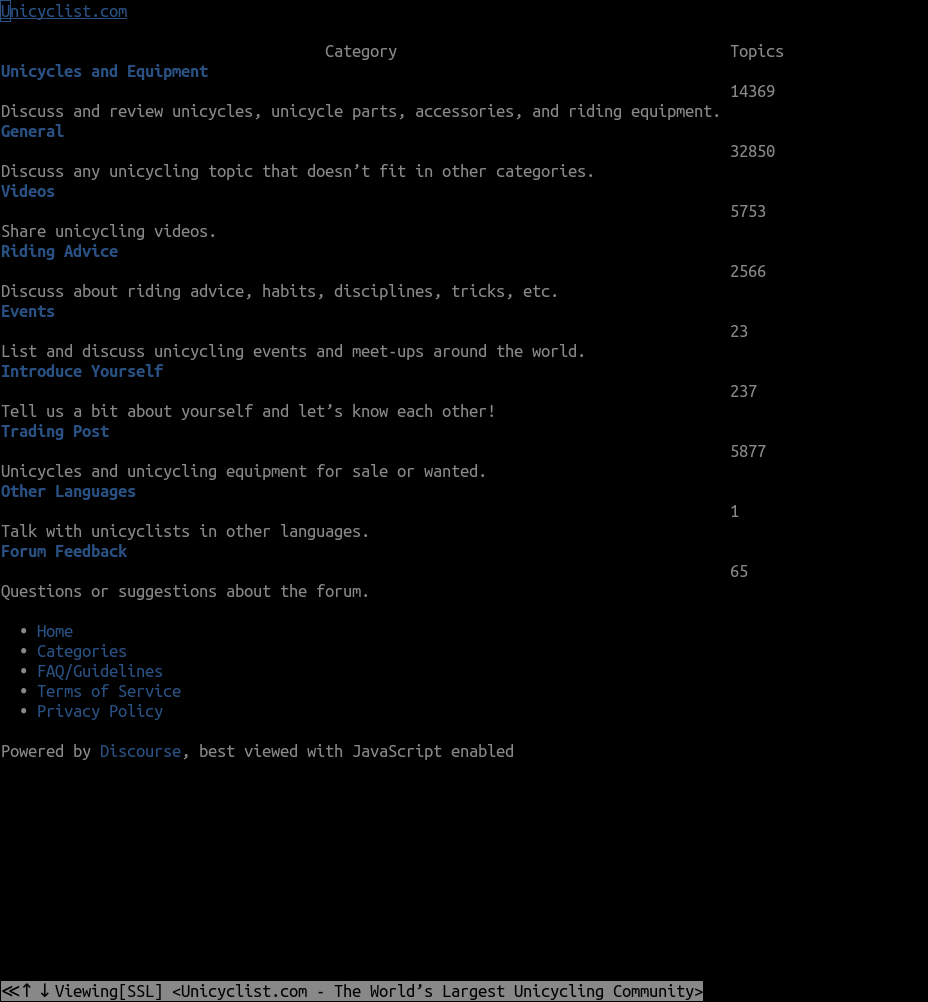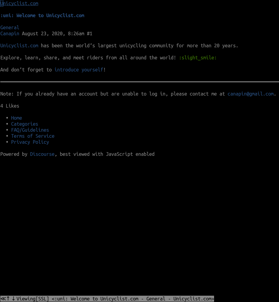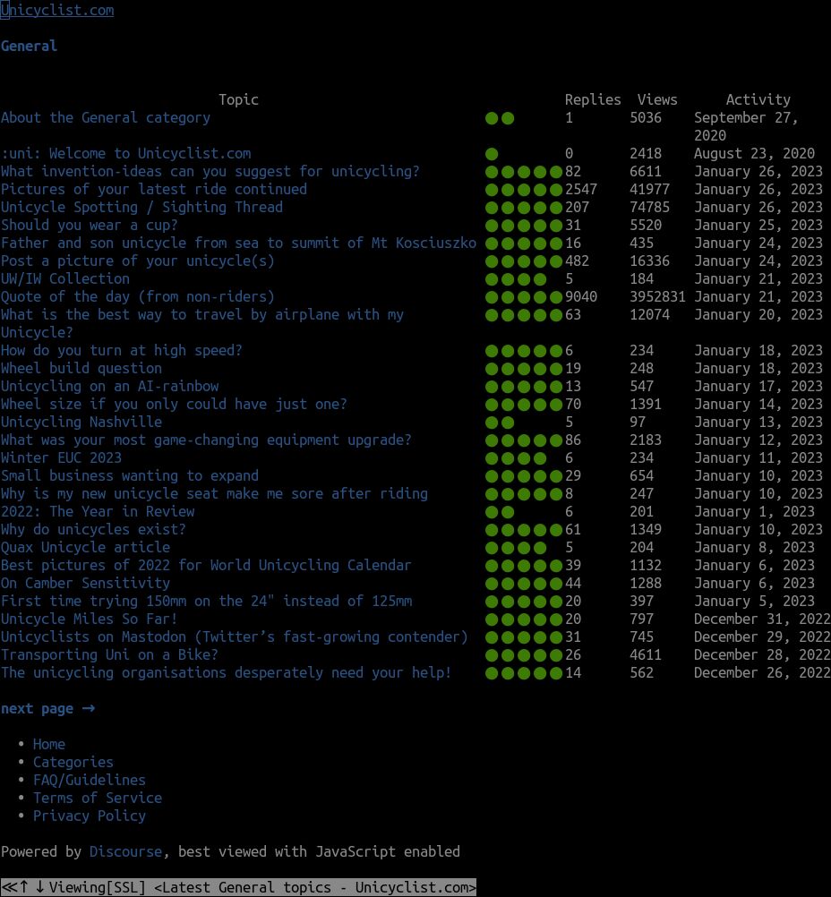 Again related but a bit off-topic, I spotted a unicyclist with a well-known avatar commenting on Discourse’s requirement of JavaScript: