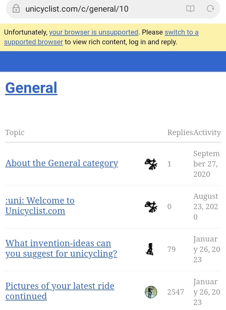 Can you share your OS and Browser name and version? If you provide this info, I can check with Discourse if there is a wrongly unsupported browser and see what they say. ![]()
