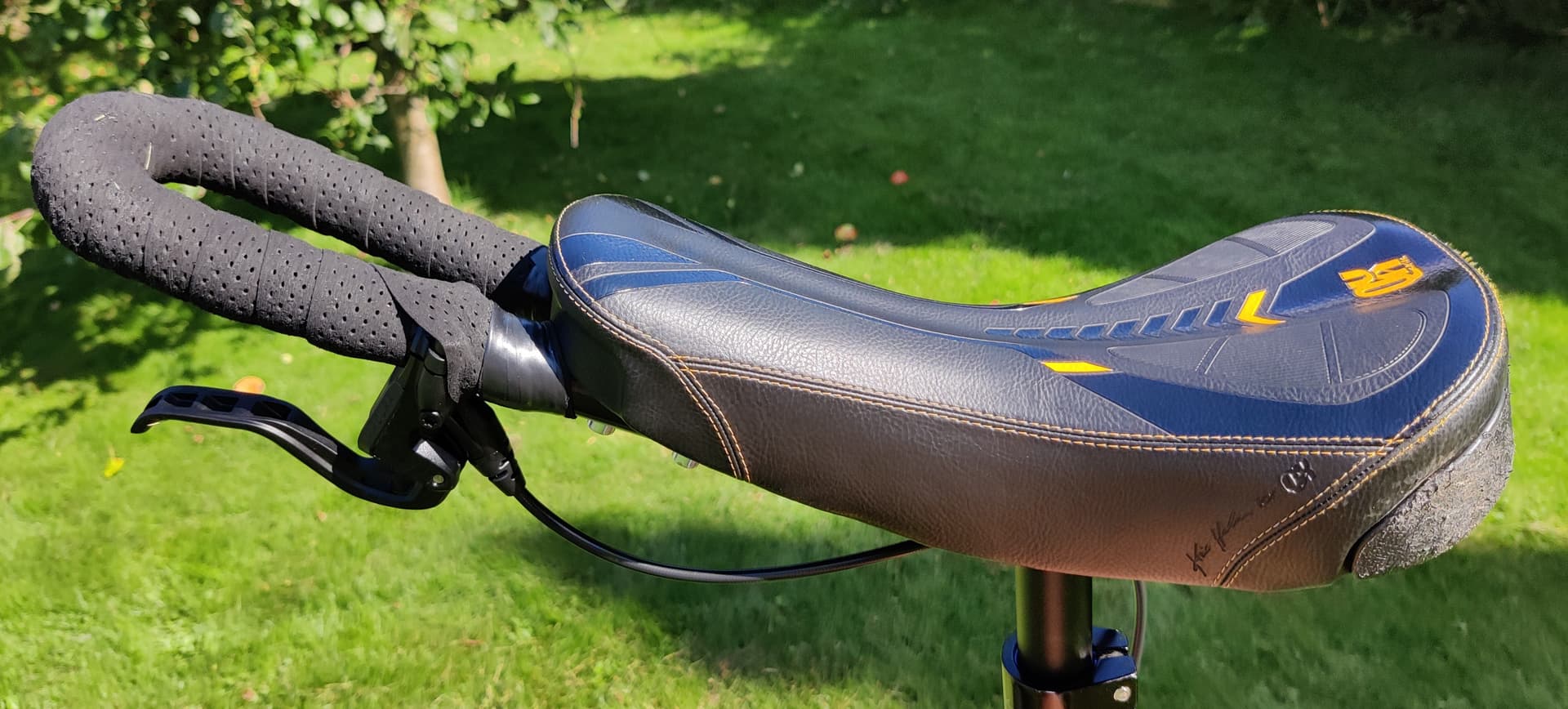 My problem with the Fusion Zero is that it has a ridge for stiffness round the bottom of the base. You have to mount the Ursli bar on the ridge, which makes it stick out at a lower angle than is comfortable for me. I ended up switching to a Nimbus saddle because it doesn’t have the ridge at the front. The bar comes out at the same angle as the nose of the saddle.