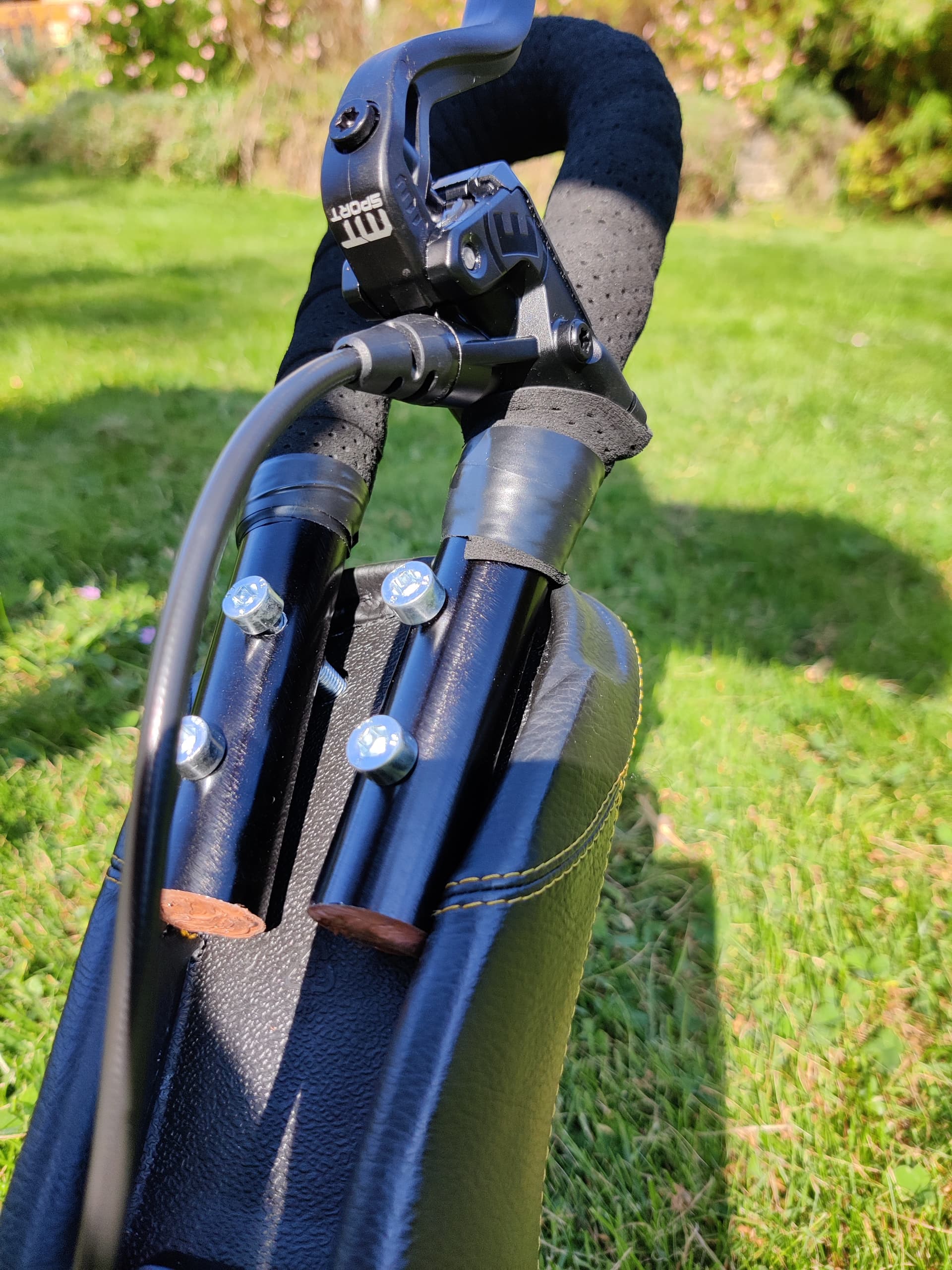 Oh wow I didn’t think you could use the brake mount in this way. @Hammer actually showed the mounting position I was describing. I have been trying that position for the last week, but I’m not sure if I’ll keep it in that position. @Maxence are you able to position the 2-bolt brake mount further back, or is that the only position possible? Can you still grip onto the bottom part of the bars in the setup pictured?