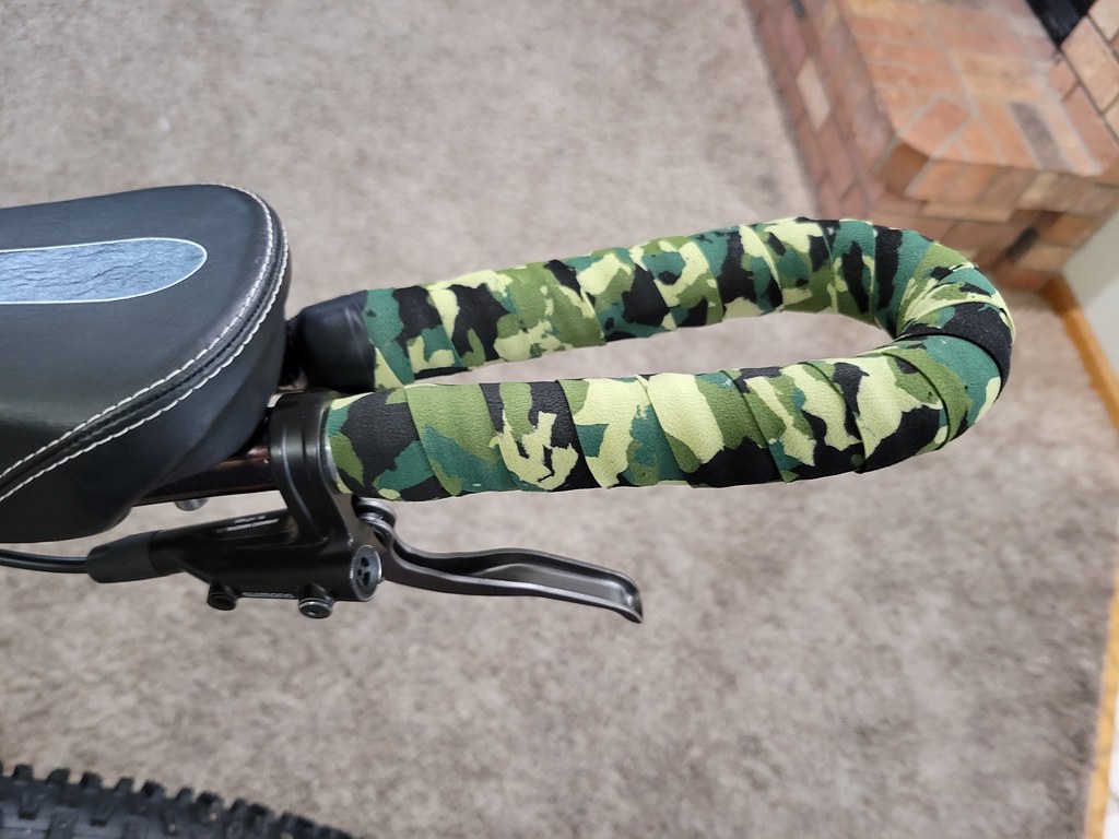 Iām not sure how I want to wrap it yet I was thinking about putting mountain bike grips where the brake is kind of like @turtle did above, but was trying to think of ideas to protect the front of the bar against hitting pavement, rocks, and mud.