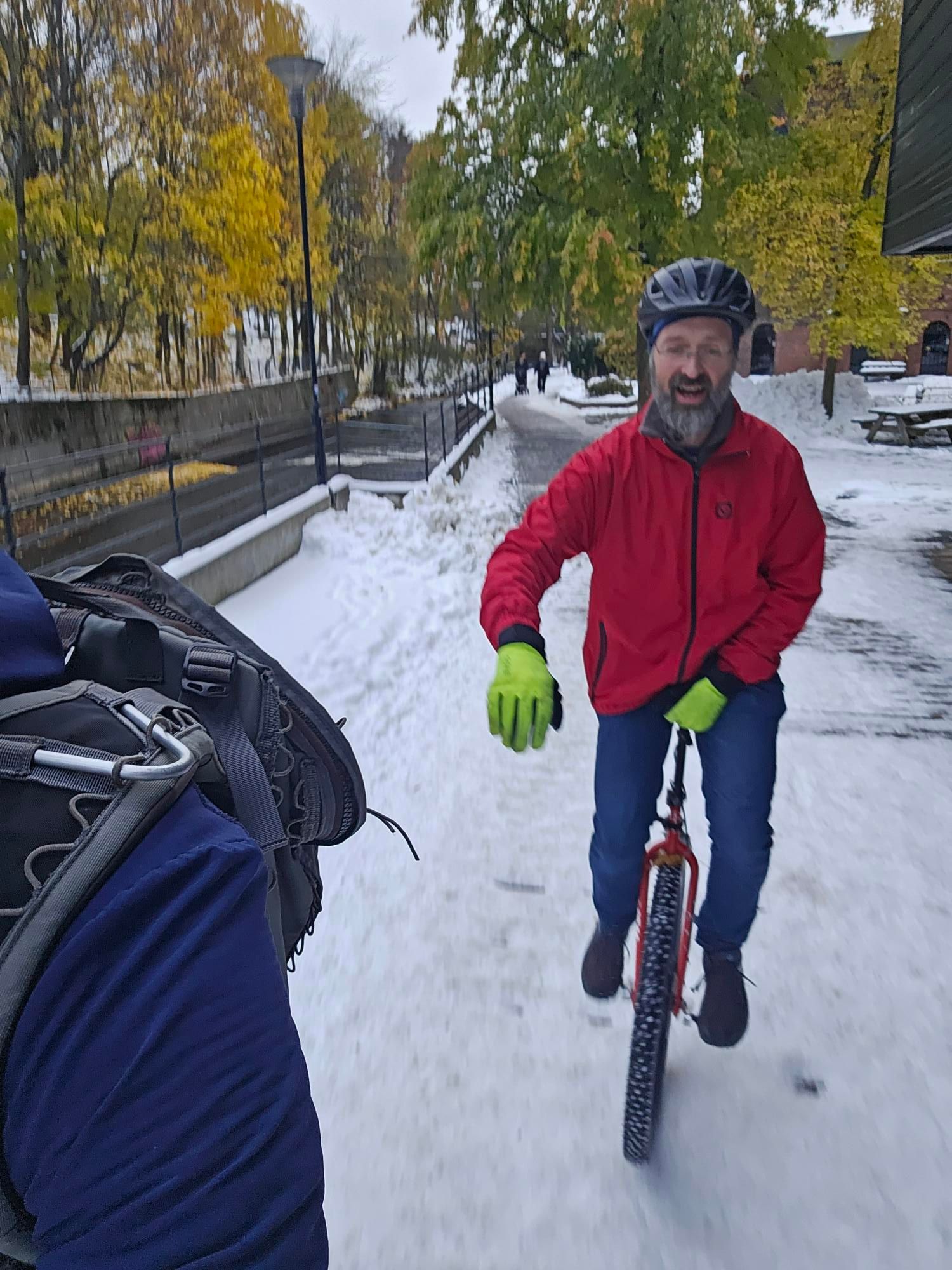 I’ve been unicycling with our dog, filming with a 360° camera on a selfie stick. Here are some ‘outtakes’ showcasing our lack of synchronisation and a couple of UPDs - a dog certainly makes unicycling more unpredictable!