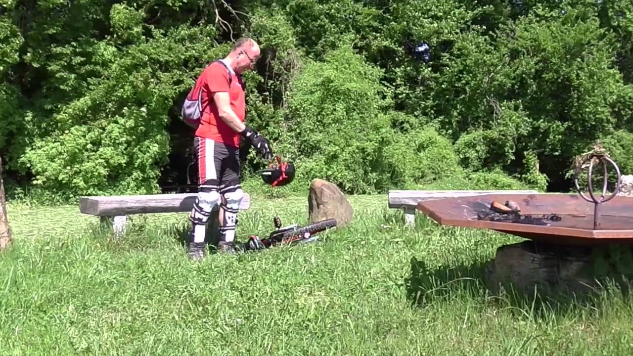 Damit ich nicht zig Gigabite mit langen Aufnahmen produziere, auf denen ich nur zu sehen bin wie ich die Kamera bringe oder hole, starte ich die Aufnahme unmittelbar vor dem Aufsteigen mit der Fernsteuerung. Dabei kann ich mich auch hinter einer Kurve ohne Sicht zur Kamera befinden. Wenn ich absteige, stoppe ich die Aufnahme wieder mit der Fernsteuerung.