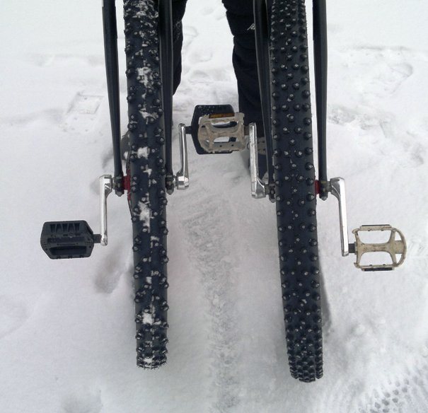 Da die Temperatur knapp unter dem Gefrierpunkt lag, war der Schnee auch schon leicht pappig. Der nach dem ersten Test für den Schwalbe erwartete Effekt blieb aber zu meiner Verwunderung vorerst aus.