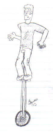 I’m so excited! This is my first unicycle christmas. I only started unicycling May 4th this year so i’m ultra excited to get some uni stuff under my tree. Of course I’ll be asking for the UNIverse and One Tired Guy Vids (maybe even one of those curious george monkey thingies), but my biggest want is a new giraffe unicycle (going against the advice of my friend K. McMullin) I was so excited about it. I drew a bunch of giraffe uni doodles in my psychology class today. I posted the best one below…