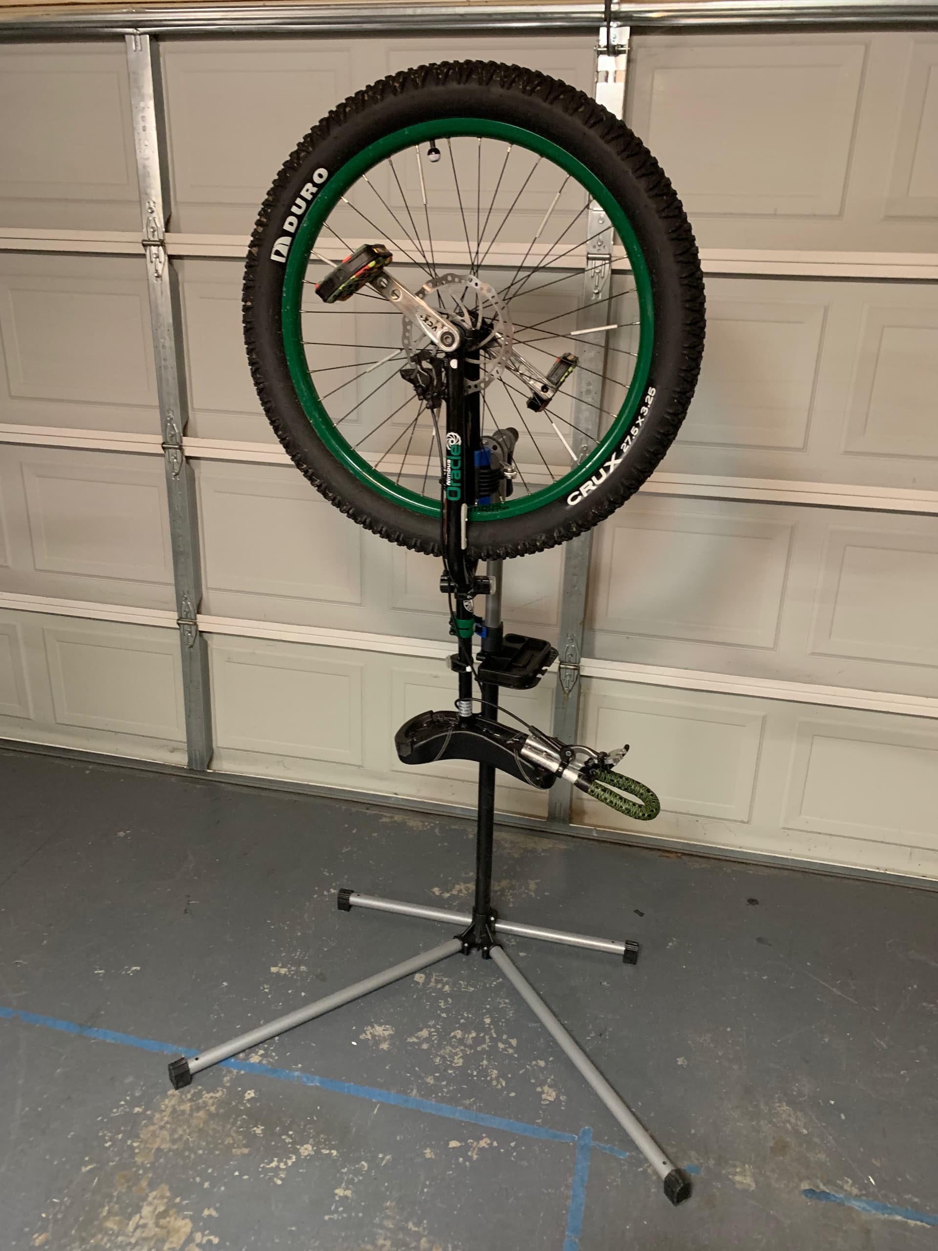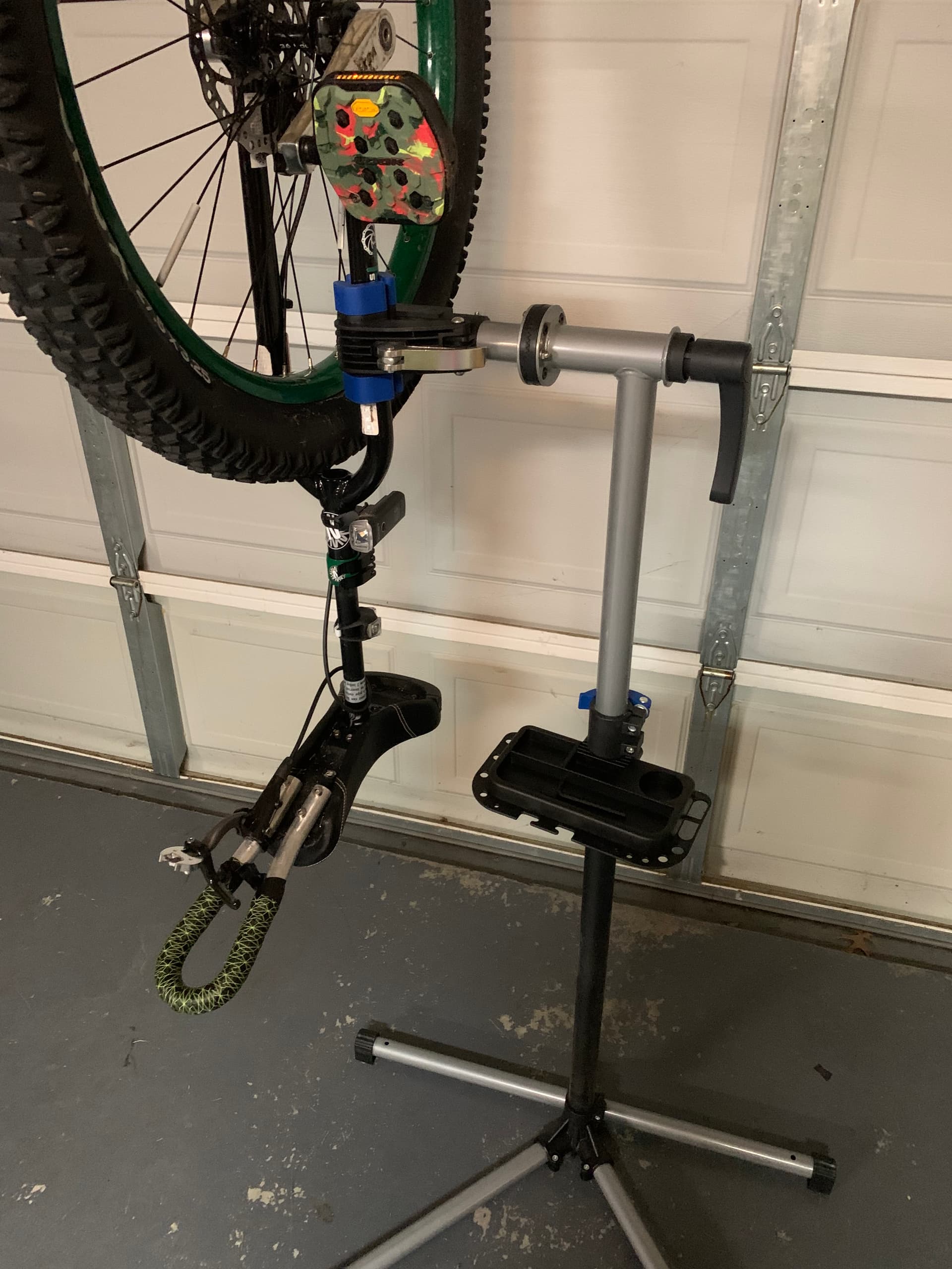 Time will tell whether this recently-acquired b*ke-stand is a game-changer, but after using it a bit yesterday, I believe it is going to make changing tubes and tires much easier. If I knew how to true a wheel, it might also help with that.