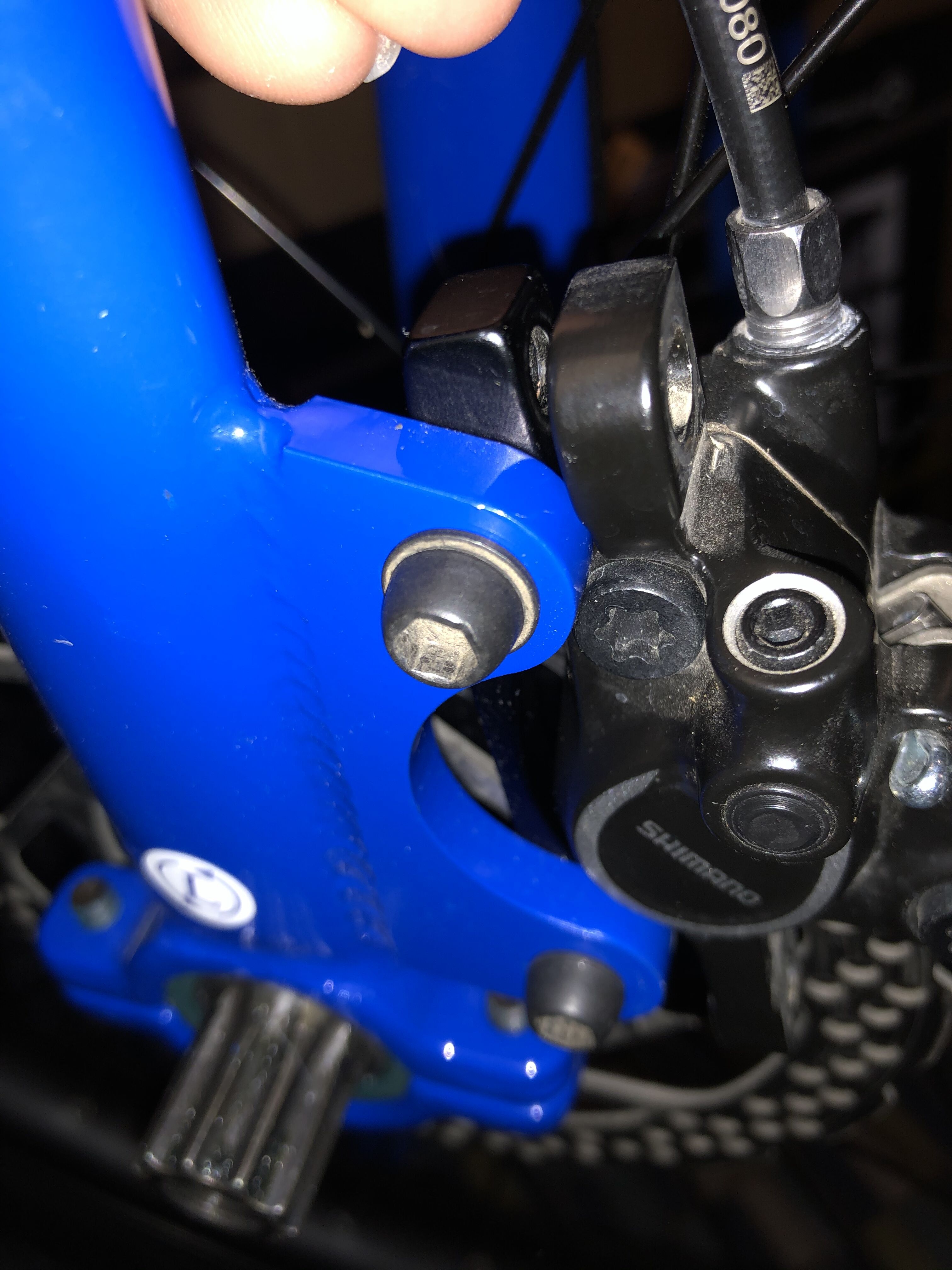 I picked up a Nimbus 29, which obviously has standard disc mounts. I picked up a IS to Post Mount 160mm front brake adapter from my LBS, but it does not seem to fit correctly.