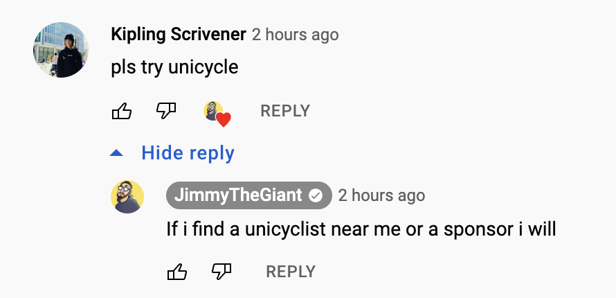 @rogeratunicycledotcom Ask him to come up to your headquarters. It’d good publicity for the sport and you might sell a few unicycles to his followers ![]()