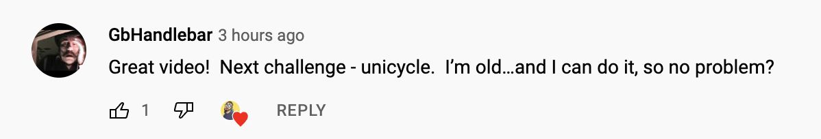 Yeah for a non-unicyclist - he sure did great. SO fun to see all the old footage!!! But his conclusion at the end? That’s the real WTF.