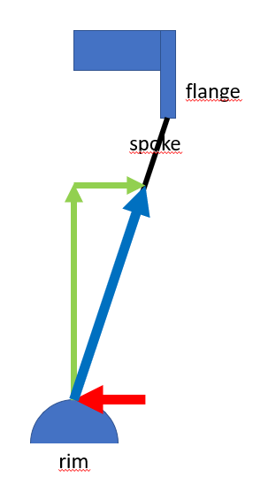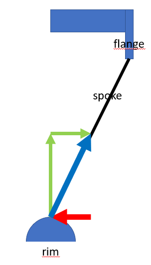Basically, if you push on the side of the wheel (let’s say with 100 N), it will move a very little bit and put stress on the spokes, which will maintain it in place. But the constraints are vectors, so to resist 100 N from the side, you need 100*(SL/SLx).